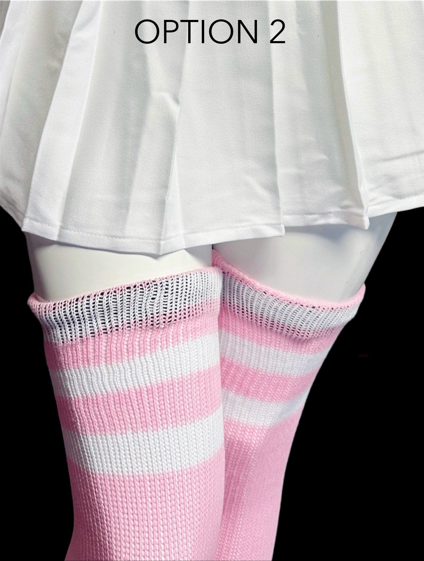 -Place the thigh high socks at the desired height, keep in mind you will be folding the socks down, over the belt.