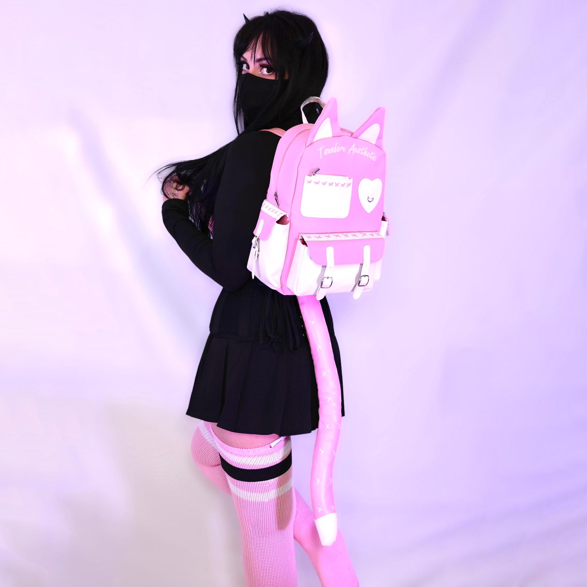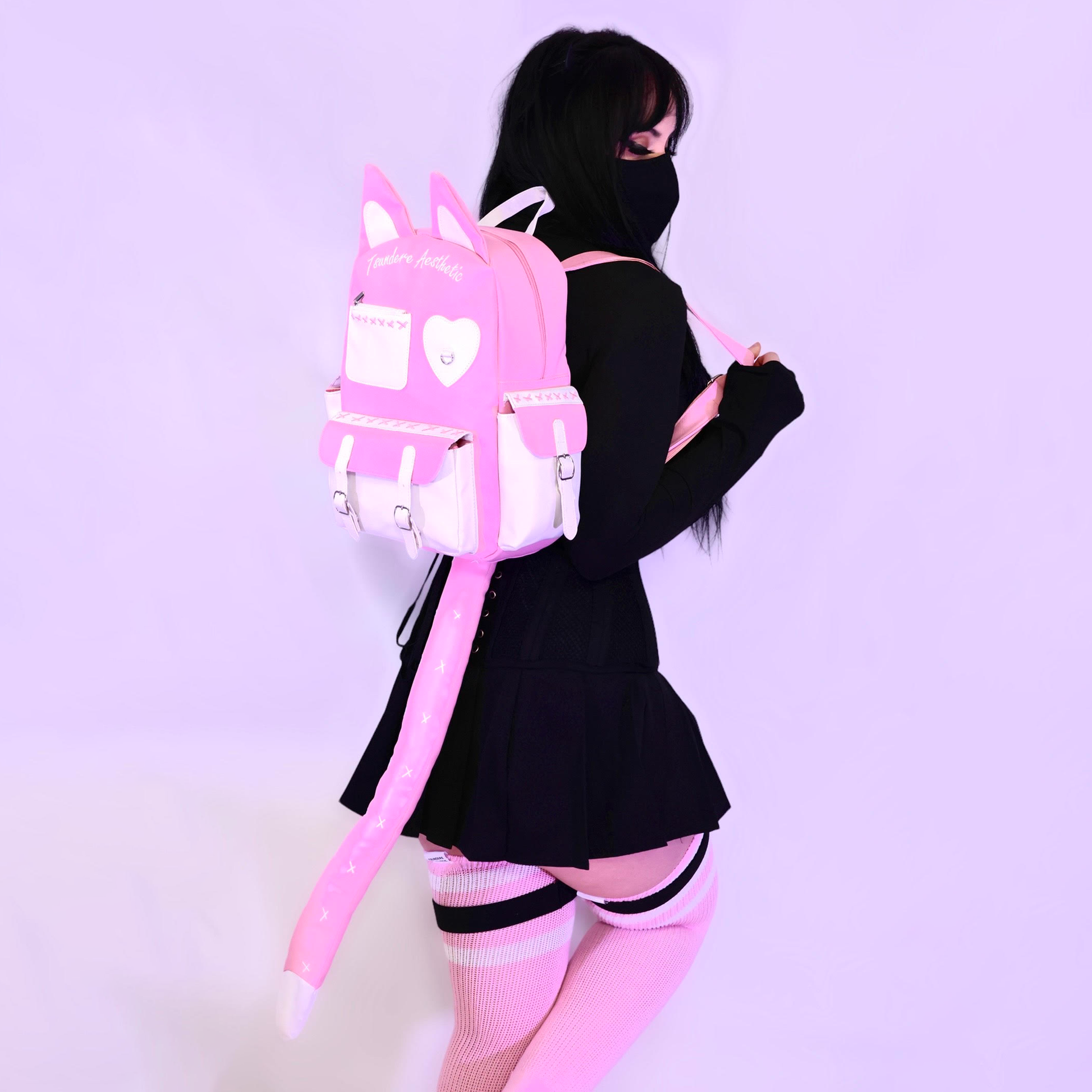 What could be more essential and kawaii than a pink neko bag! Swish that pink tail around and brighten everyone's day! You're just too adorable, and so is this backpack, what a purrrrfect match you two are!